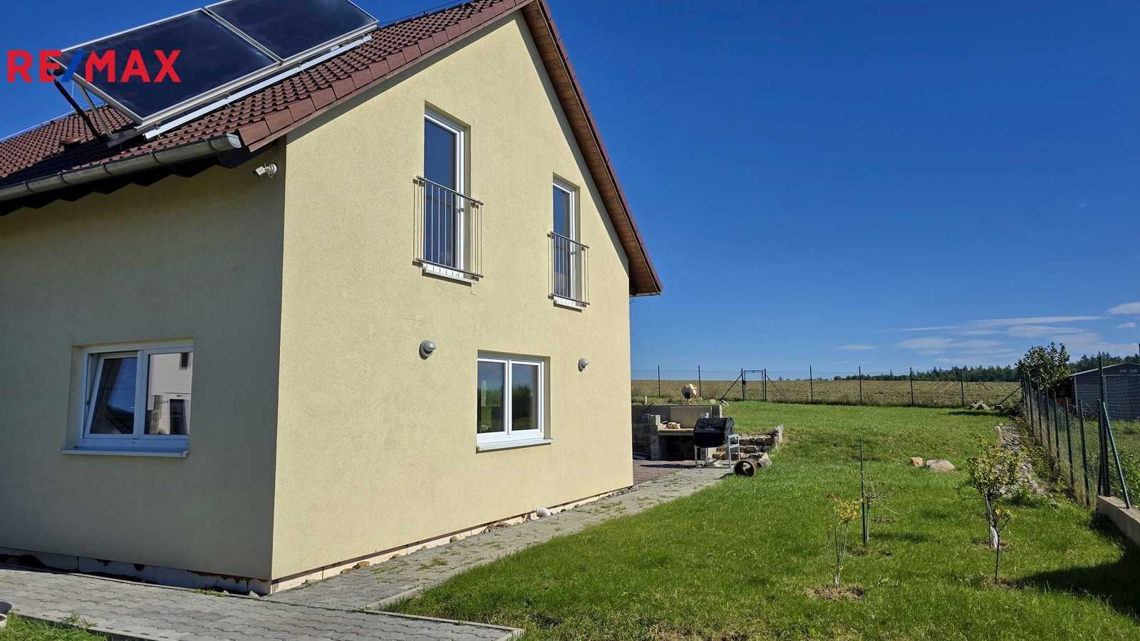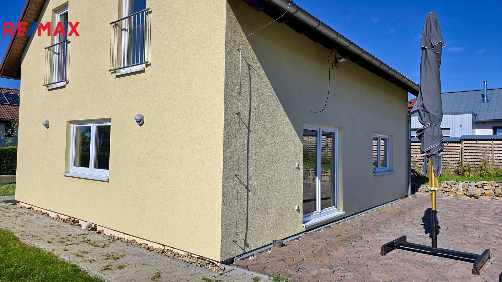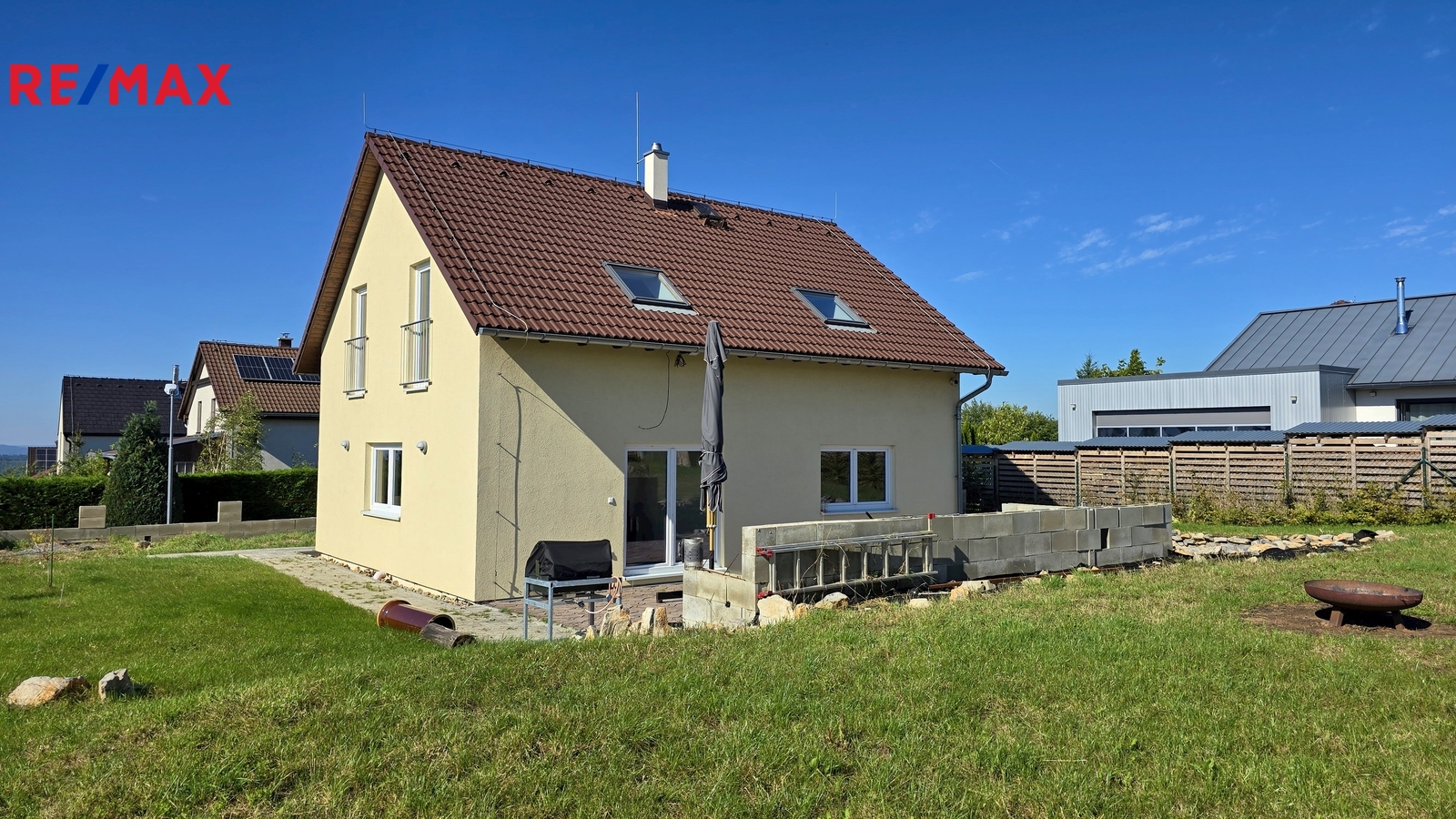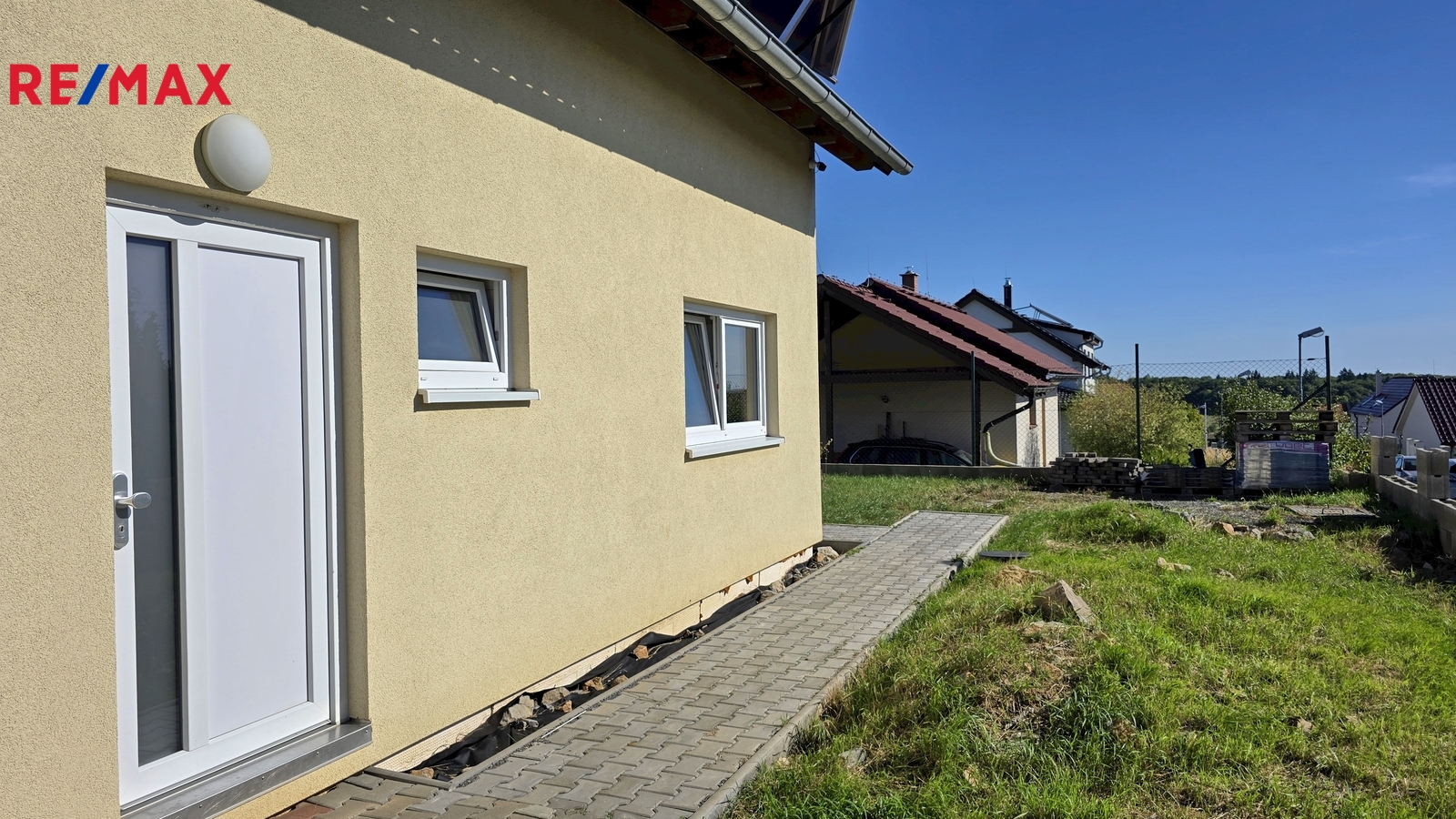 Dům je připraven k nastěhování, ale zahrada a bezprostřední okolí ještě čekají na finální úpravy – což je skvělá příležitost dotvořit si exteriér podle vlastních představ.