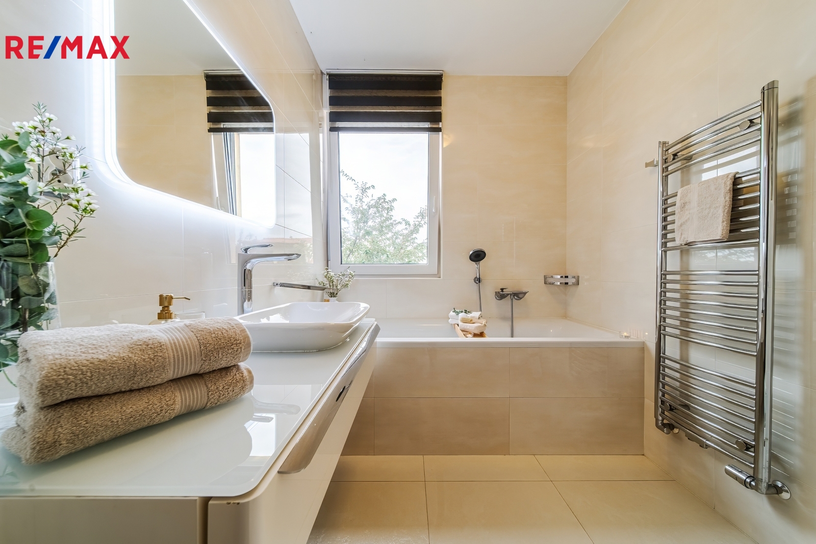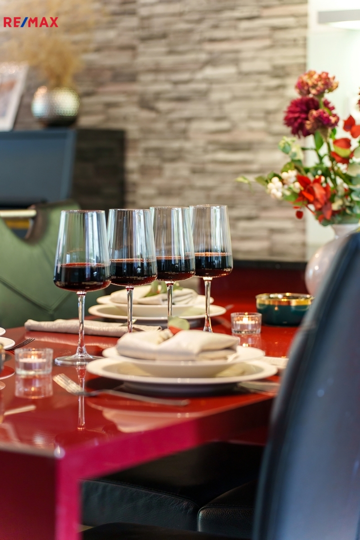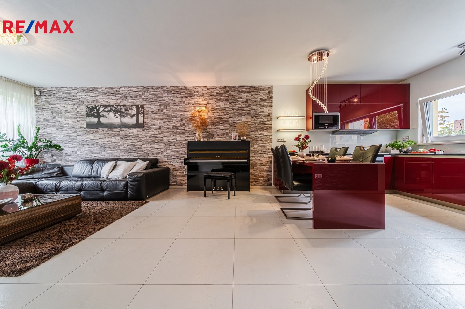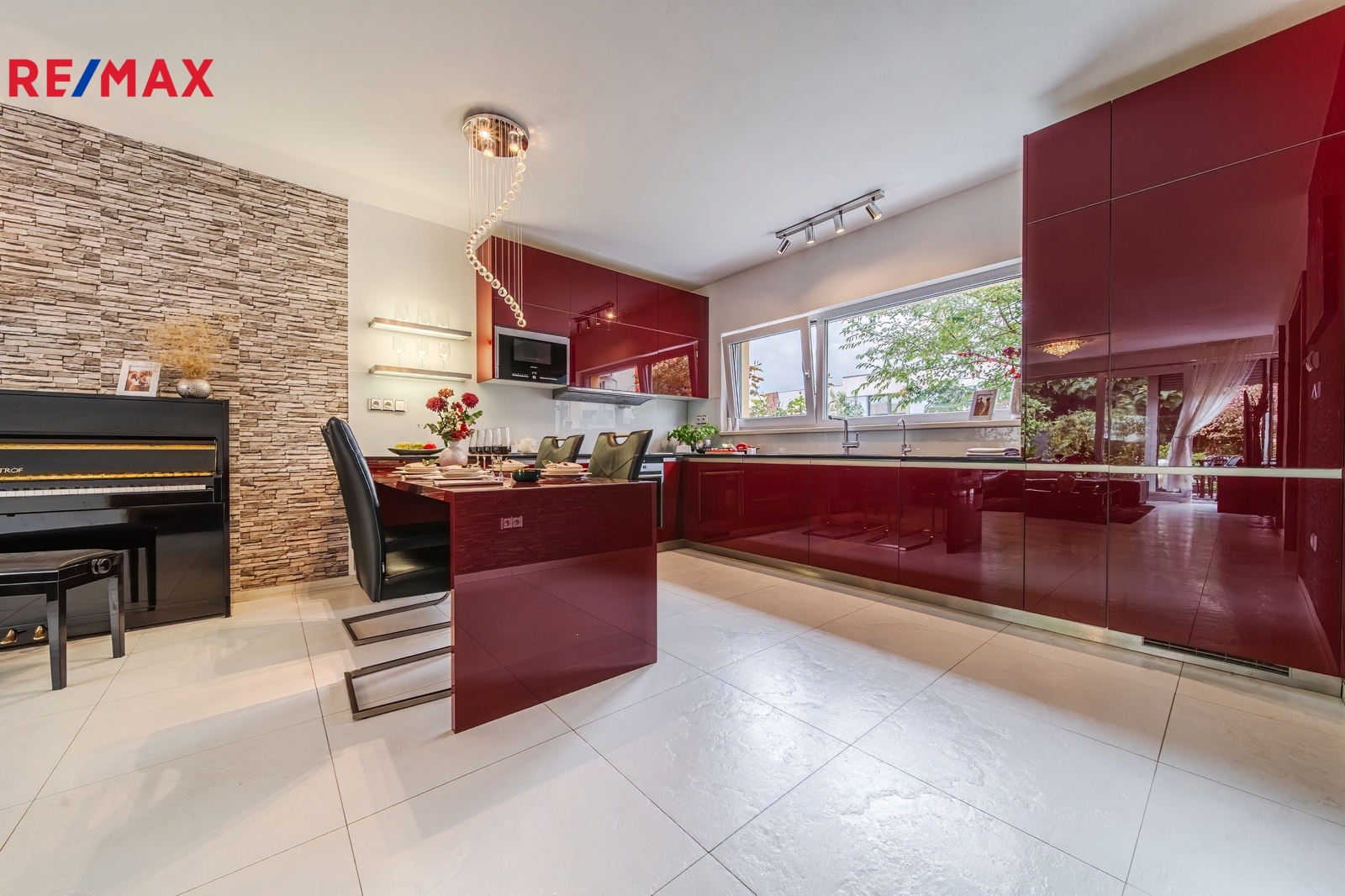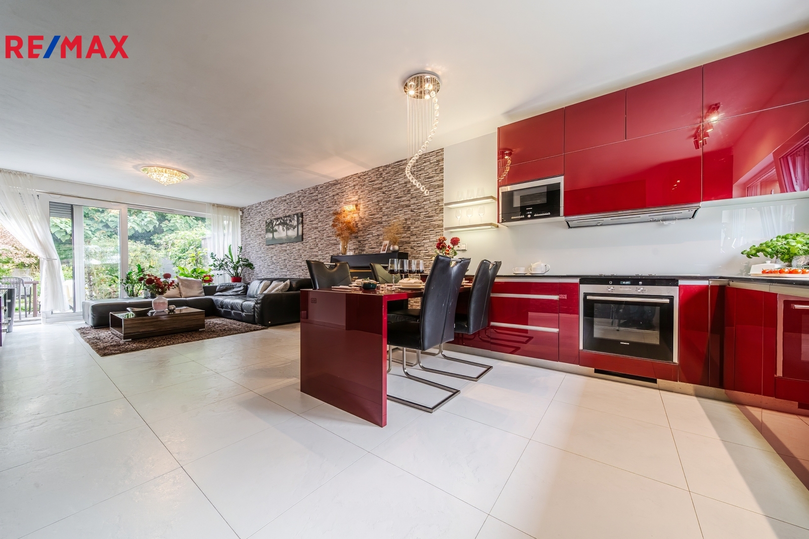 Kuchyň: Moderní kuchyňská linka včetně vestavěných spotřebičů značky Siemens (indukční varná deska, horkovzdušná trouba, lednice a mikrovlnná trouba).