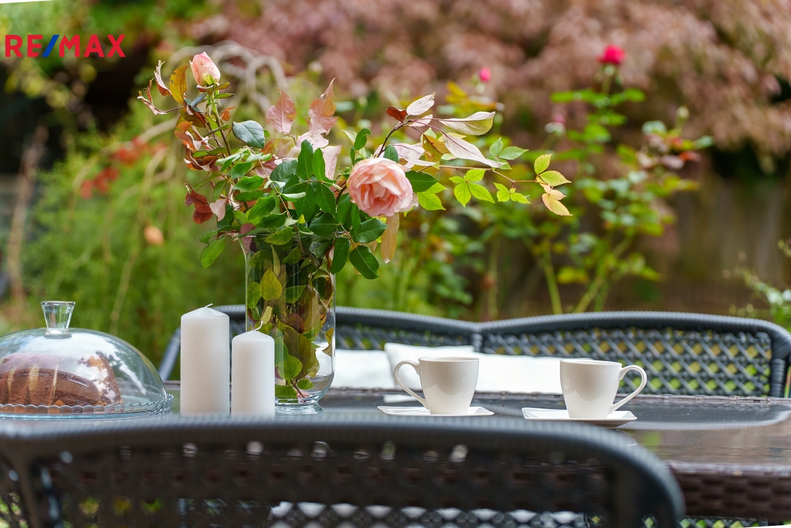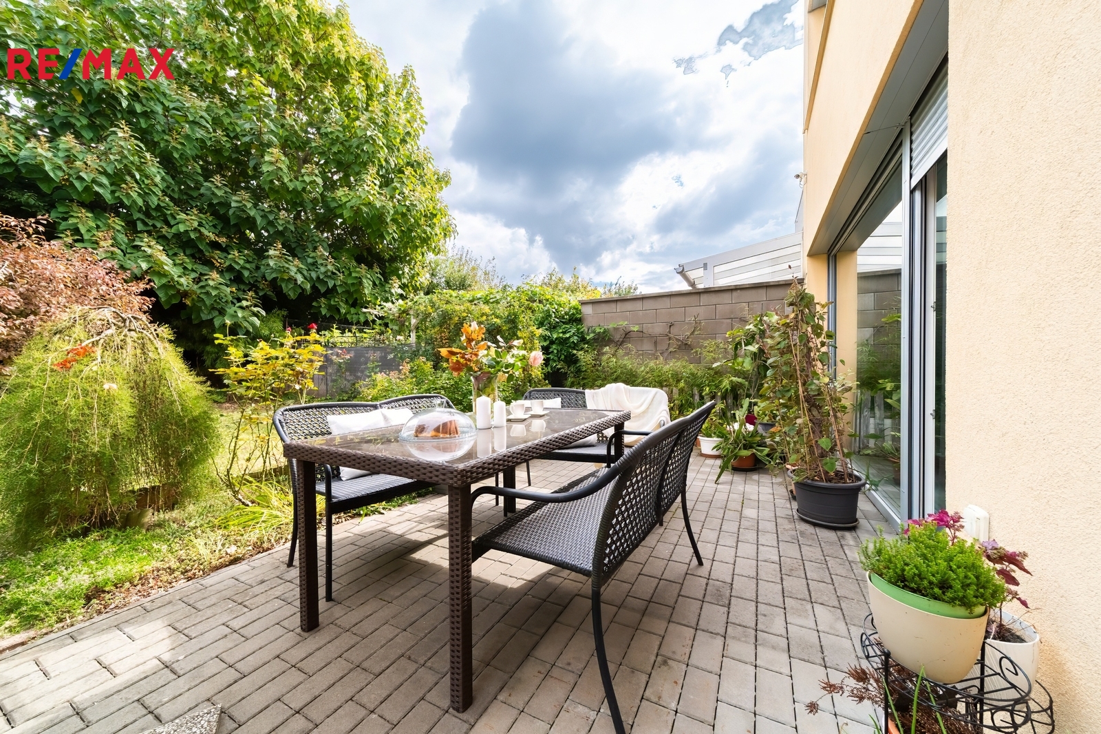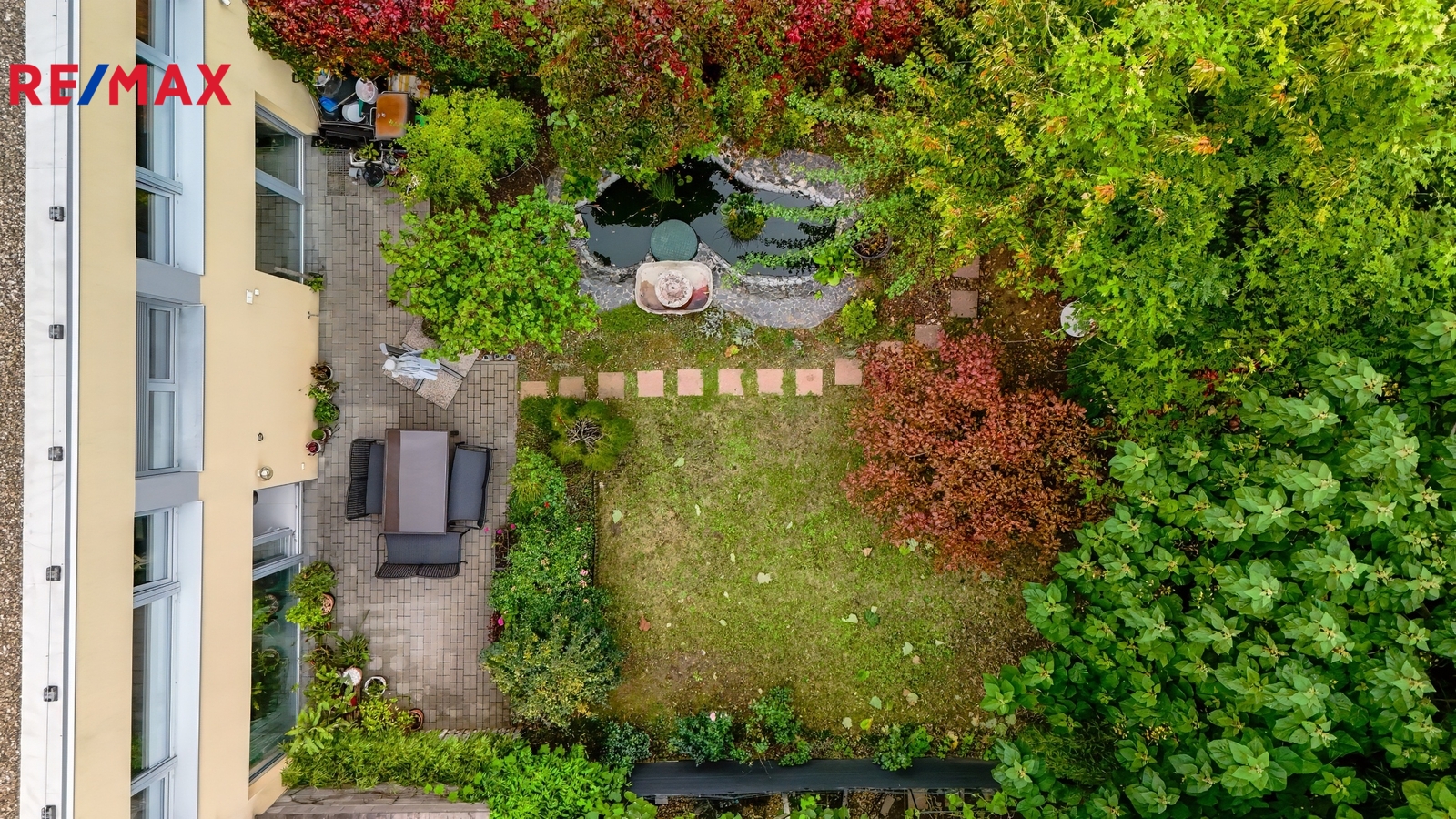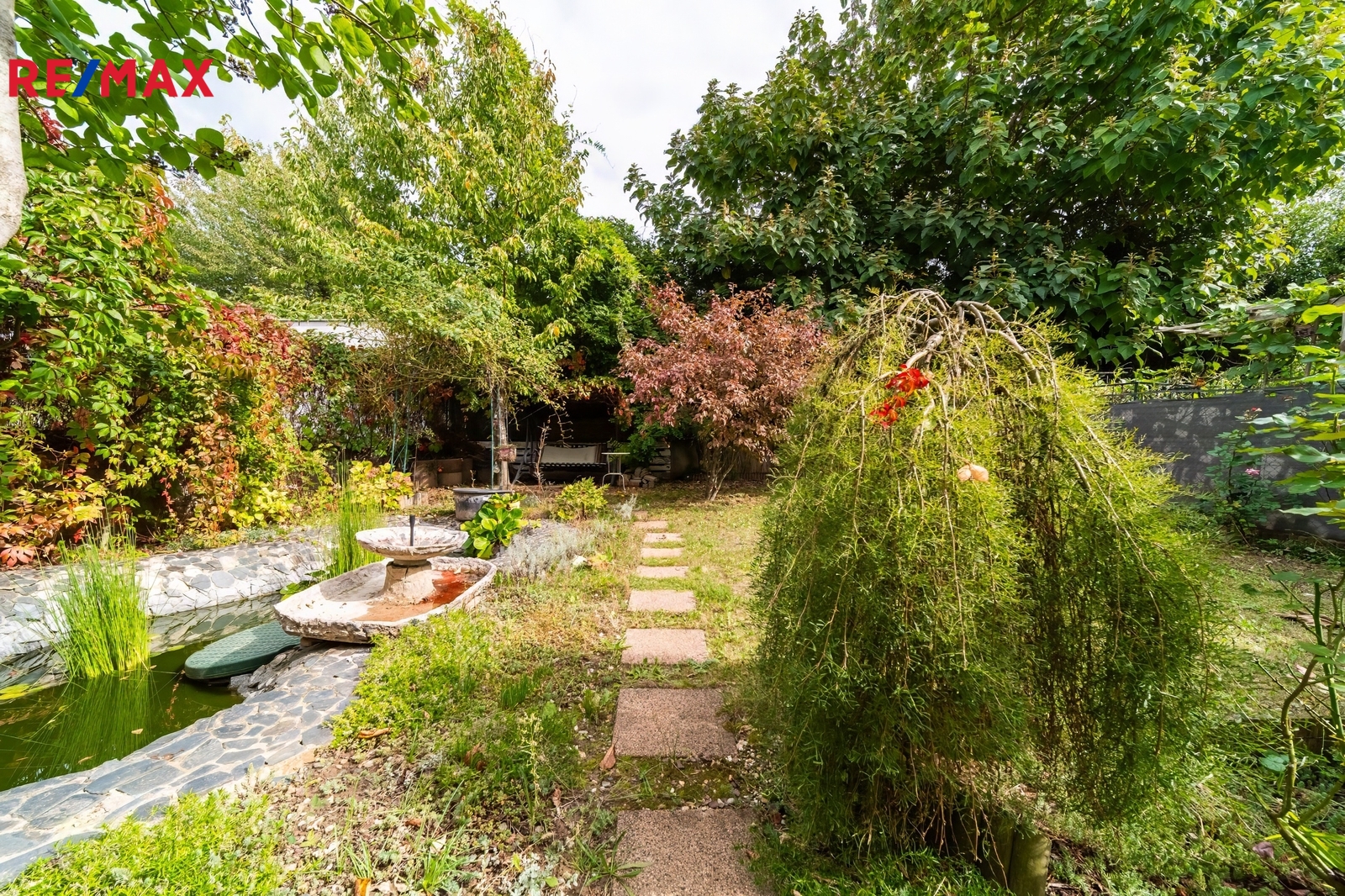 Zahrada: 140 m² s posezením a jezírkem.