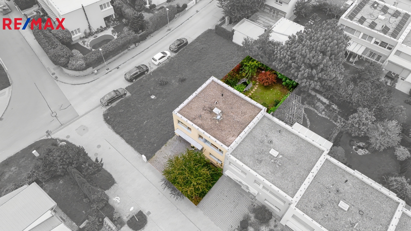 Předzahrádka: 70 m² s parkovacím stáním pro dvě auta.