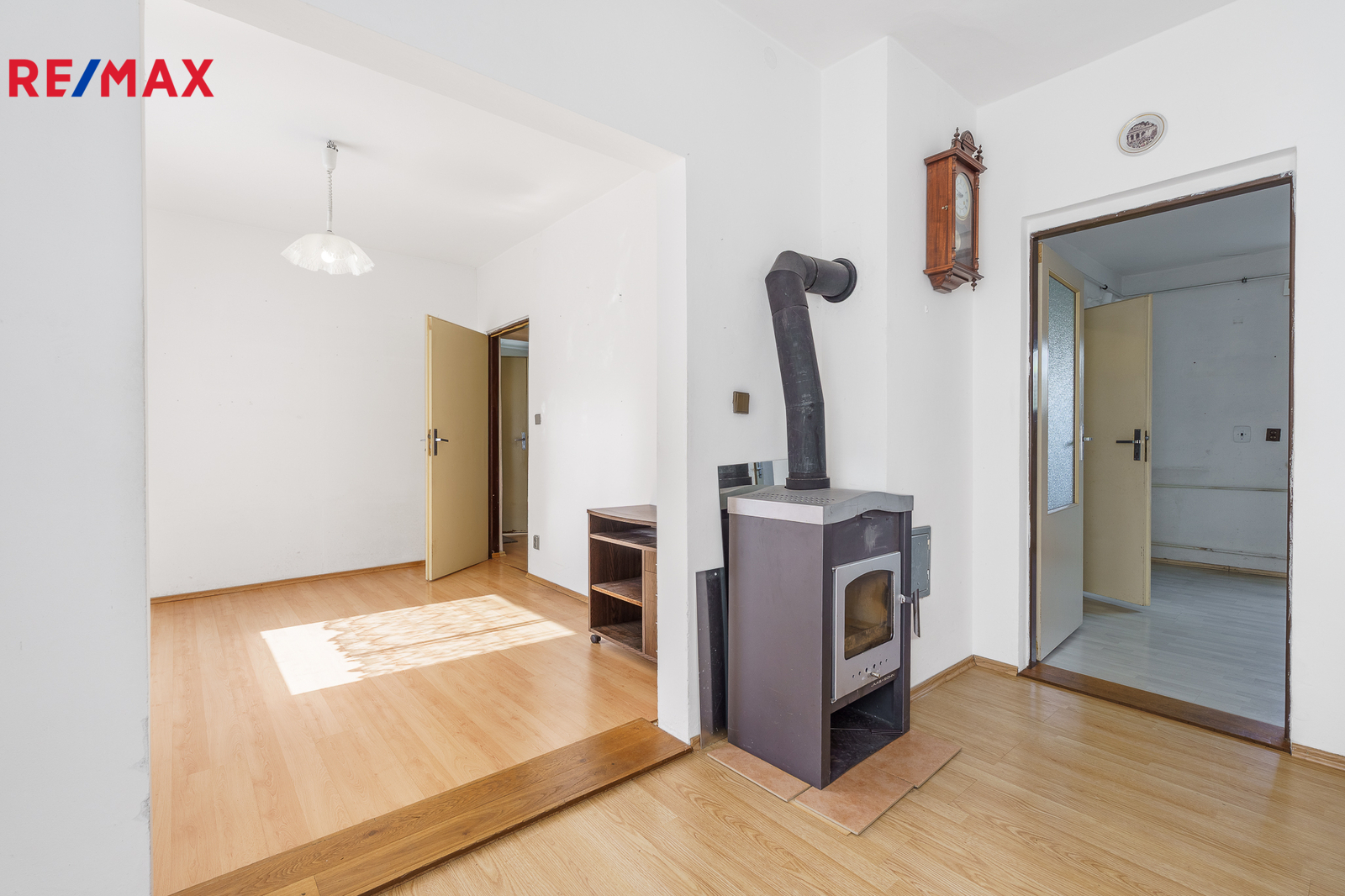 Domek je staršího data, nic méně udržovaný. Jeho dispozice je 4+1. K domu je přistavěná poměrně velká garáž. Na pozemku je skleník a několik stromů a keřů. Dům je kompletně vystěhovaný, což je obrovská výhoda pro nového majitele. Nad garáží, která navazuje na dům, je velká terasa, vchod vede z kuchyně, ze které můžete i na zahradu. Kromě parkování v garáži, je možné parkovat souběžně s domem, nebo za domem.