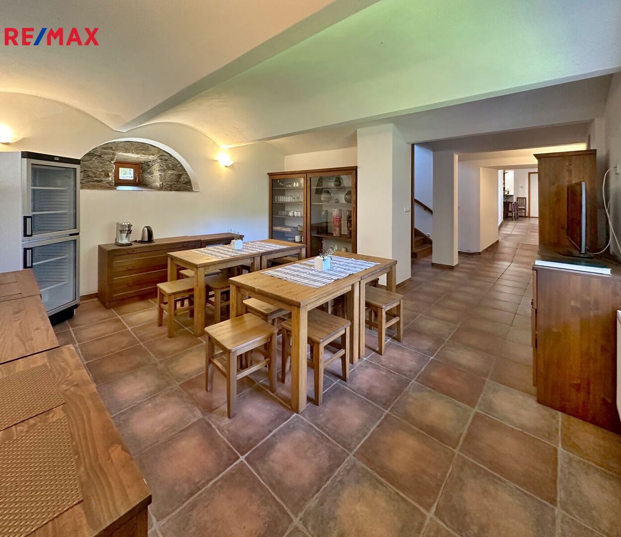 Nemovitost má potenciál rodinného domu pro větší rodinu, nabízí se koncept bydlení v kombinaci s podnikáním.