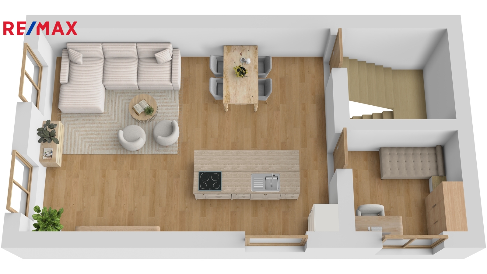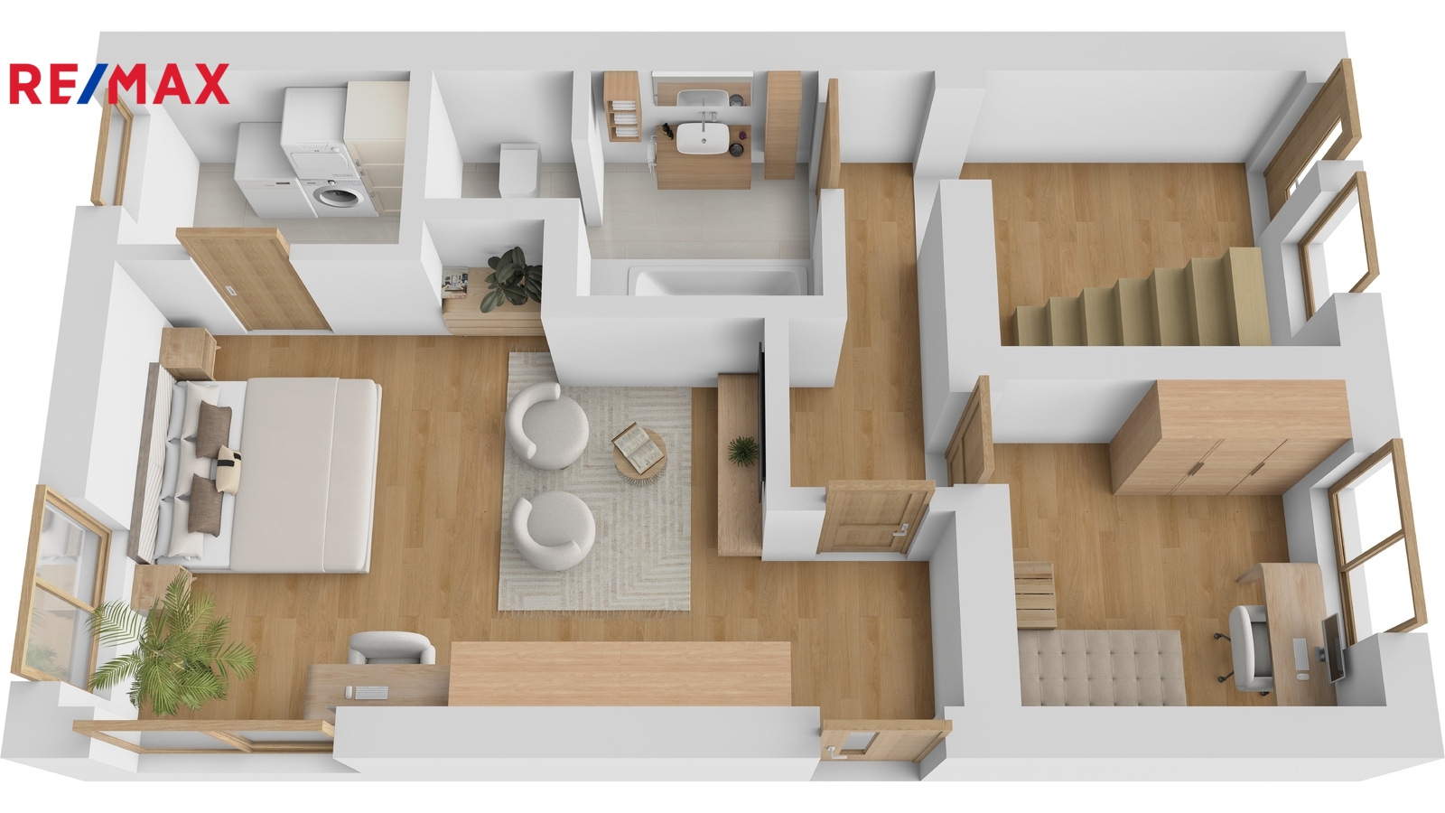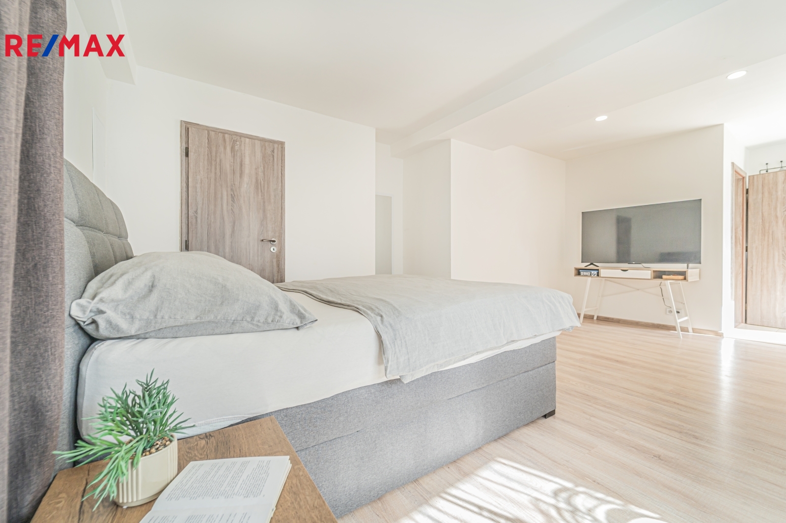 Dům nabízí ideální rodinné bydlení s aktuální dispozicí 4+kk se zahradou a nadstandardním zázemím v podobě prostorné díly a samostatného fitness v rámci vedlejší stavby domu. Dílčí uspořádání místností v jednotlivých patrech domu je nejlépe patrné z vizualizací ve fotogalerii.