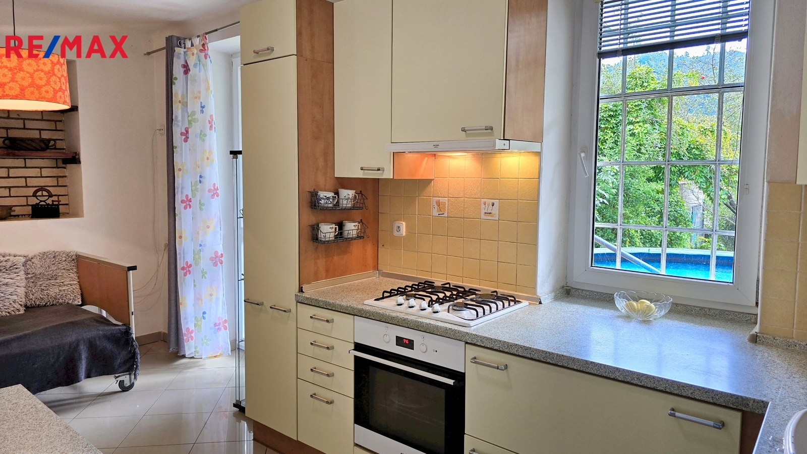 Velkým benefitem této nemovitosti je rozlehlá zahrada, plná vzrostlých ovocných stromů a zeleně, která zajišťuje naprosté soukromí a příjemné klima po celý rok. Terasa s výhledem do okolní krajiny je místem, kde najdete klid i inspiraci.