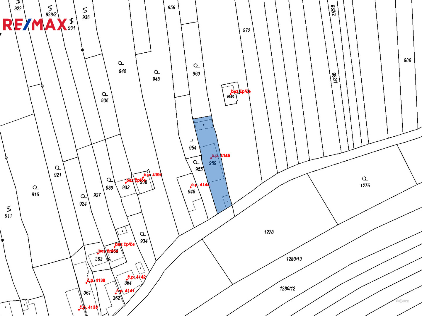 - délka všech pozemků: 145m