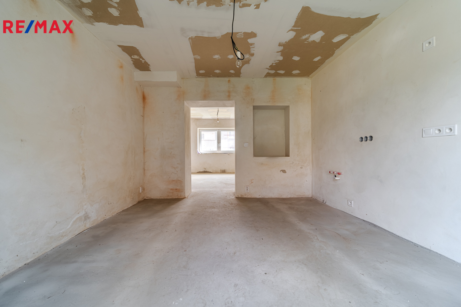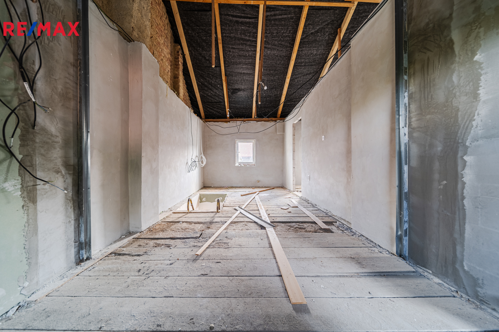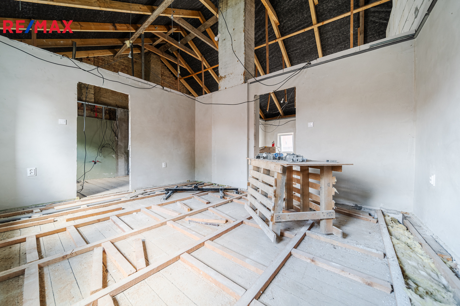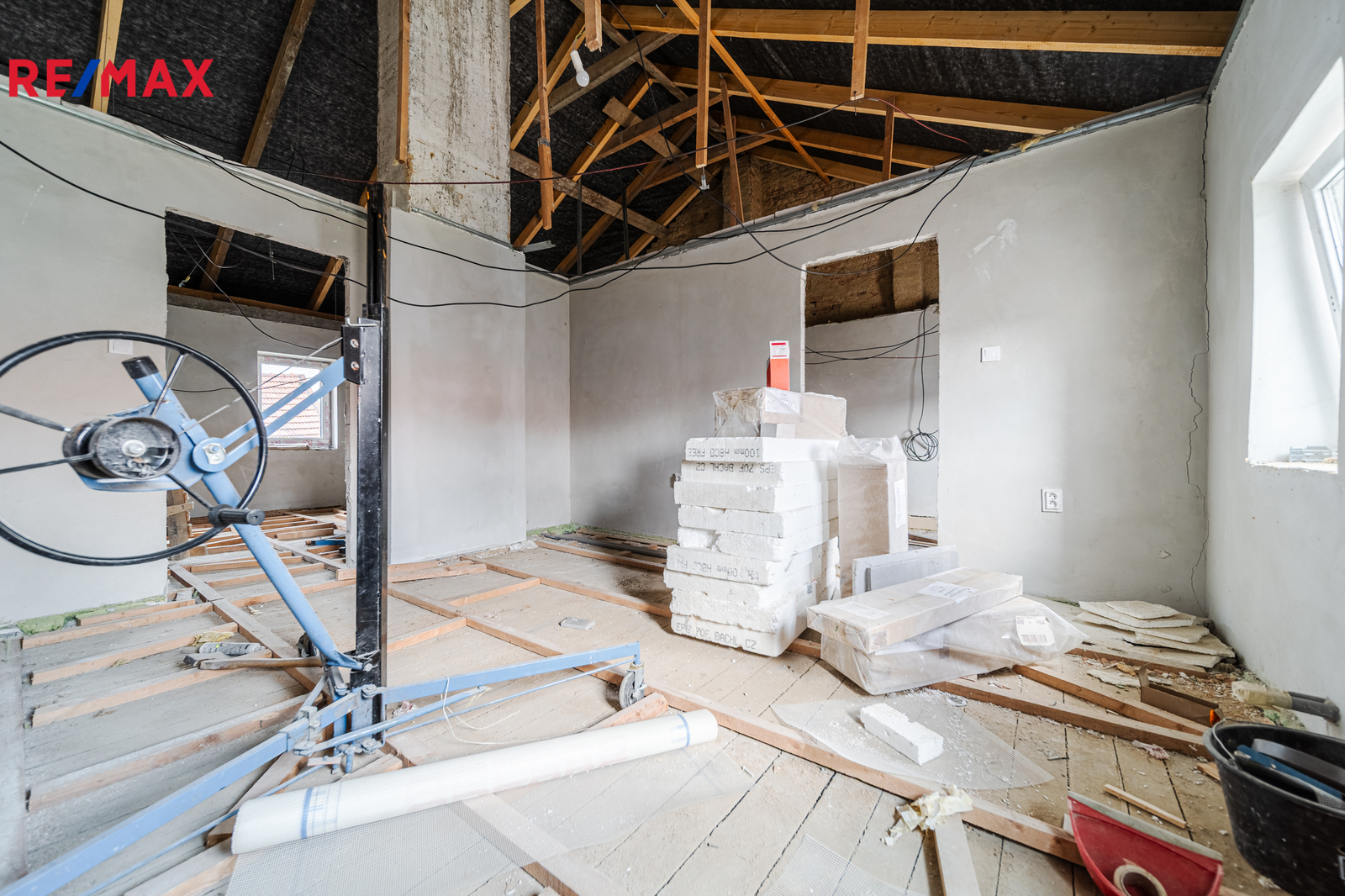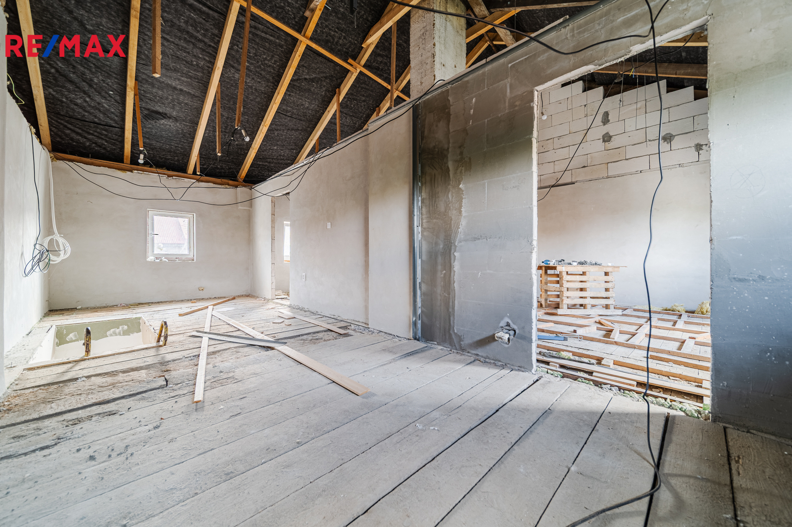 Dispozice 3+1 nebo 4+1 podle realizace dostavby započaté výstavby v podkroví domu.