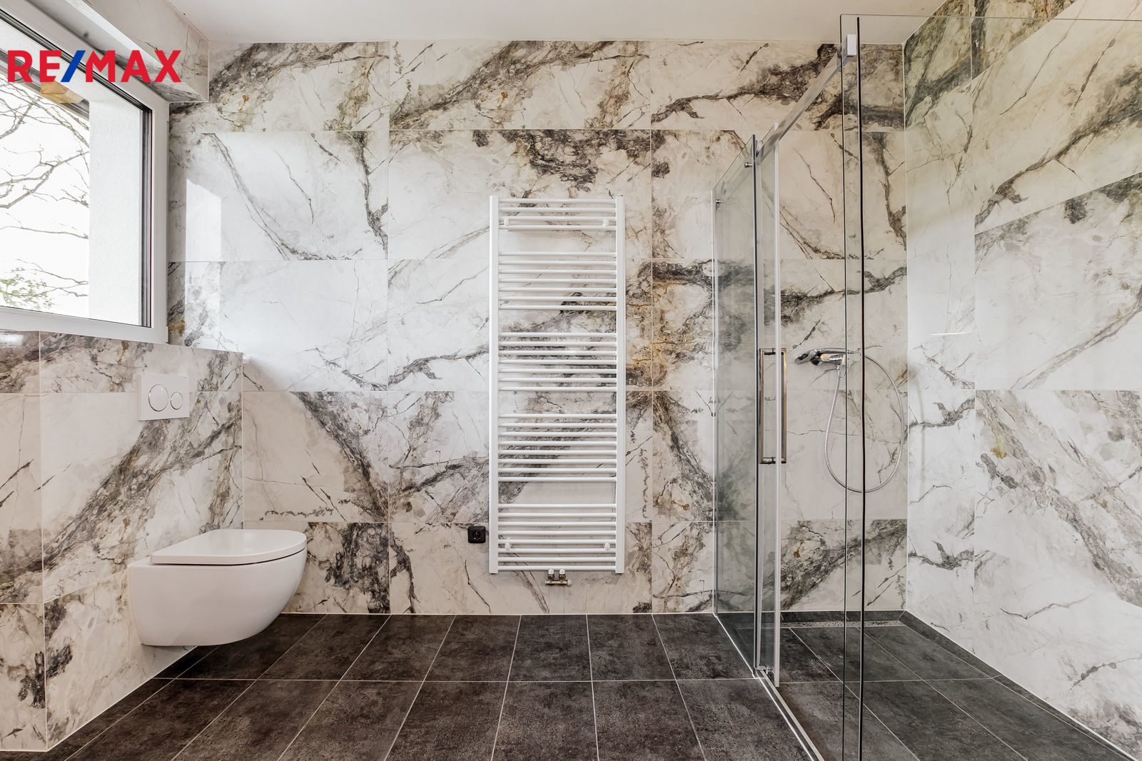 Dále se zde nachází ložnice, předsíň, technická místnost, vstup do dvojgaráže a koupelna se sprchovým koutem a WC. V koupelně je také vše připraveno na umístění domácí sauny.