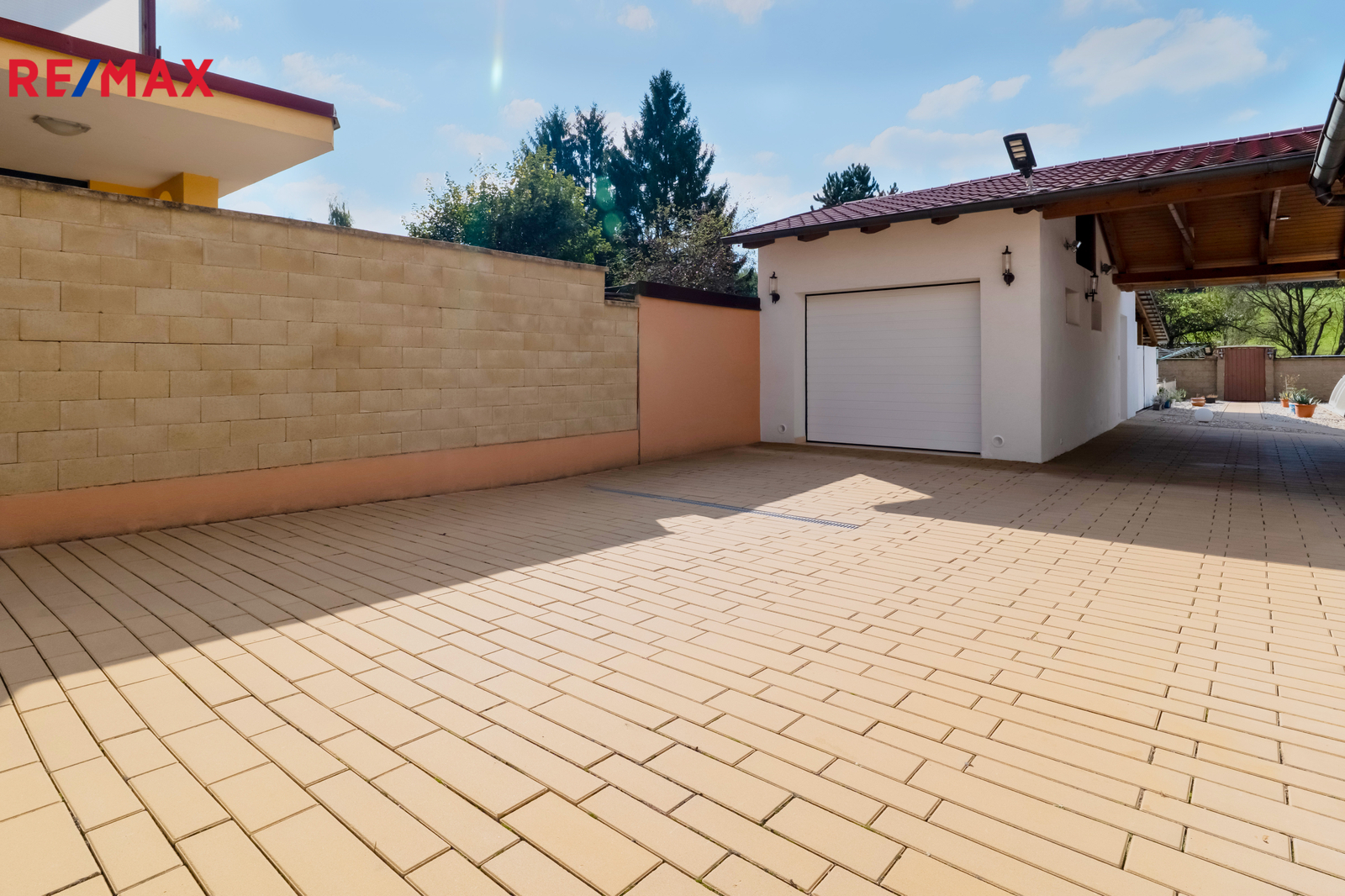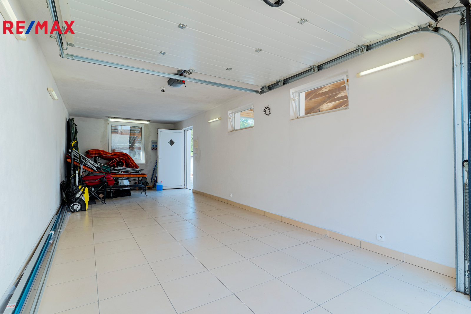 • Garáž s dálkovým ovládáním, zastřešený průjezd, sklady a dílna – praktické pro firmu i koníčky